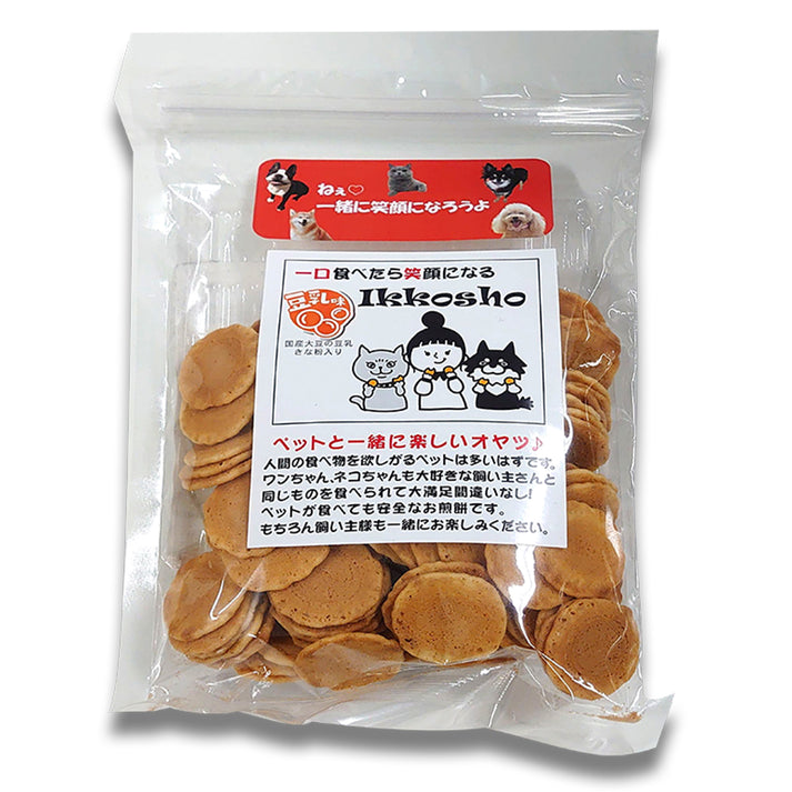 たんぱく質は健康を気にする人々が注目する栄養素ですし、大豆や豆乳は女性は特に摂取すべき食物として気にかけたいところですよね!そしてこのお煎餅自体も人間より体の小さなペット達が安心・安全に食べられるように、信頼のおける老舗のお煎餅屋さんにお願いして焼いてもらっているそうです。
